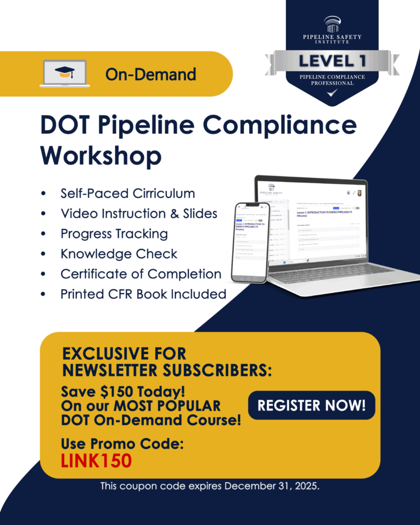 Advanced DOT Pipeline Compliance Workshop is on the calendar!